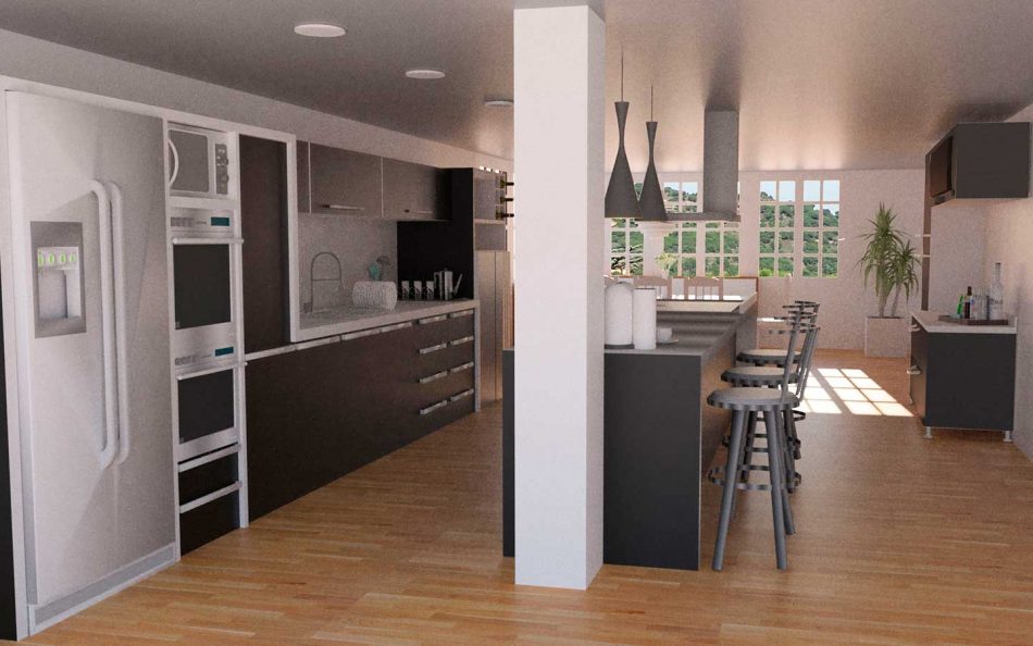 Trabajo de renderización de exteriores e interiores para pre-venta.